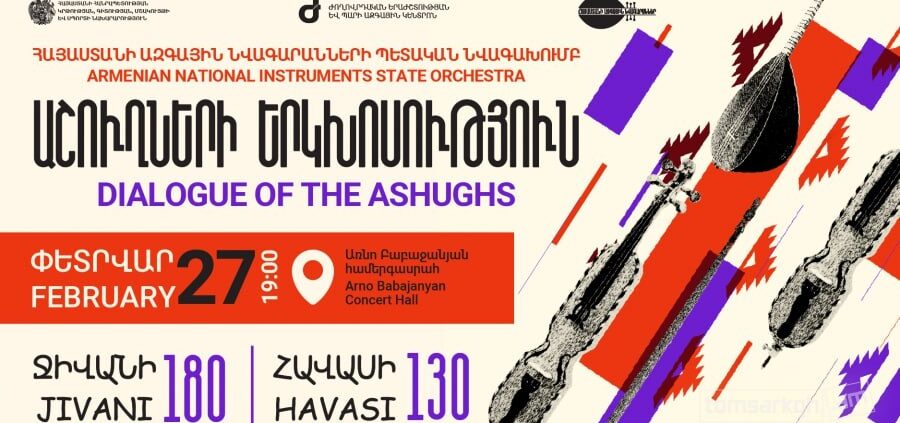 Համերգը տեղի կունենա փետրվարի 27, 19:00-ին, «Առնո Բաբաջանյան» համերգասրահում: Բաց չթողնեք ձեր հնարավորությունը՝ մասնակից լինելու «Աշուղների երկխոսությանը»: